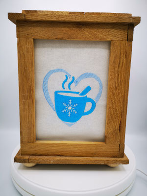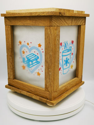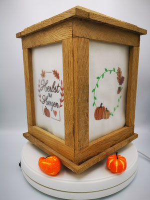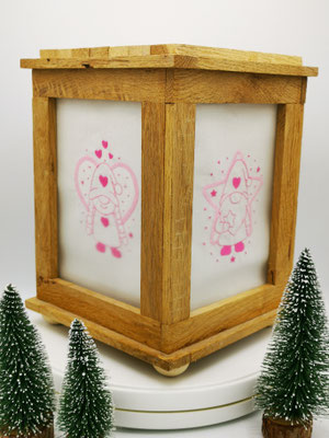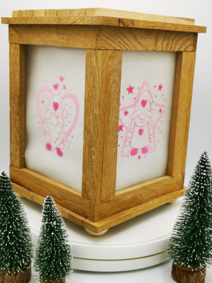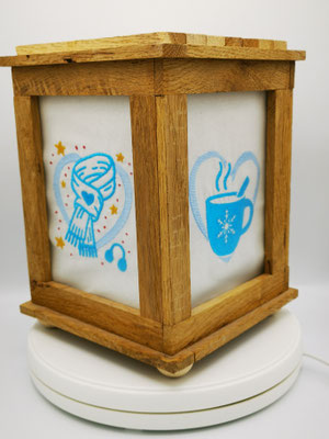 Für eine schöne Atmosphäre wird die Laterne mit einem elektr. Teelicht oder einer Lichterkette
