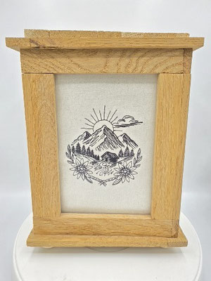 Das Seitenteil ist ca.18,5cm x ca.13,5cm groß. Die Seitenteile können gegen andere Motive ausgetauscht werden
